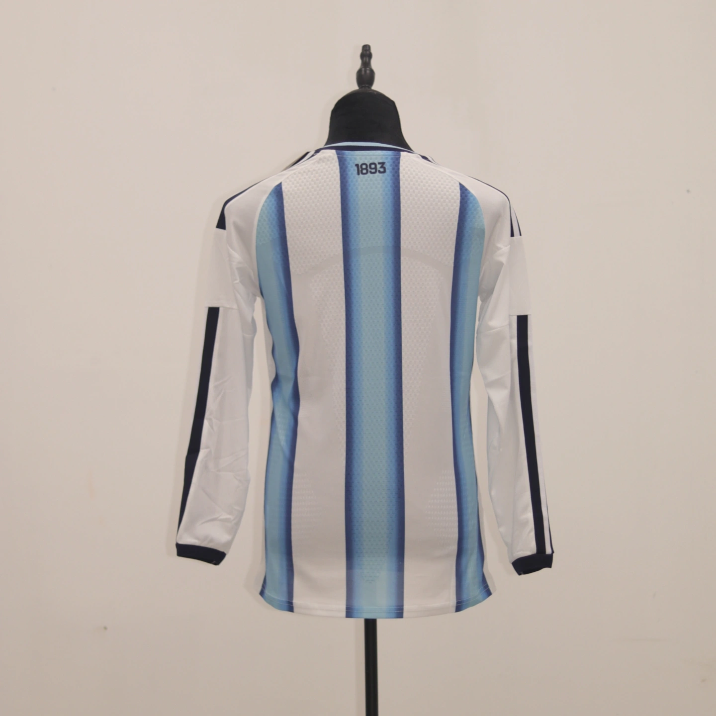 The Argentina 26 Home Replica Jersey is more than just a jersey; it's a celebration of Argentina's football legacy. This kit is inspired by the jerseys worn during Argentina's three World Cup victories in '78, '86, and '22, and complemented by the federation's year of foundation as a proud sign-off. Cool. Dry. Ready. Climacool wicks and disperses sweat for a cool, dry and distraction free performance. The jersey's doubleknit construction offers durability and comfort, while its slim fit hugs the body, allowing for unrestricted movement on the pitch. Embrace the spirit of the world champions with this jersey.