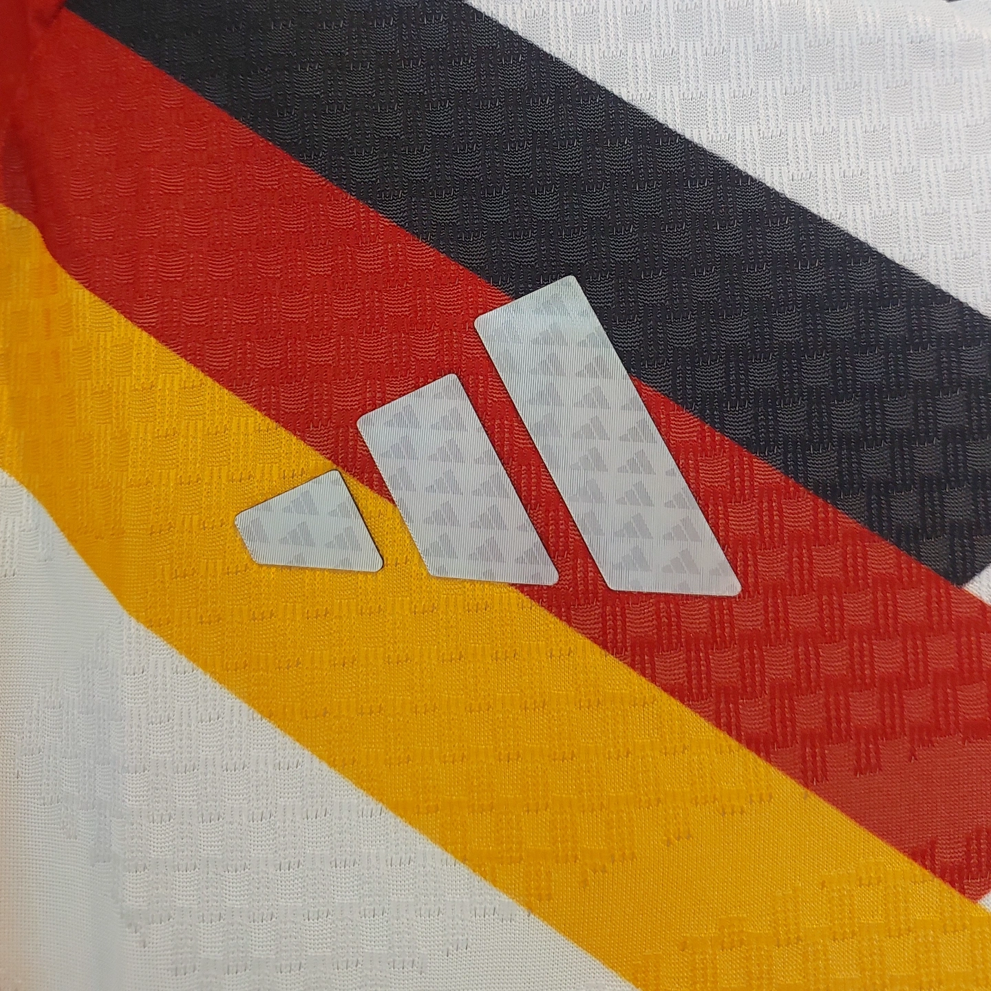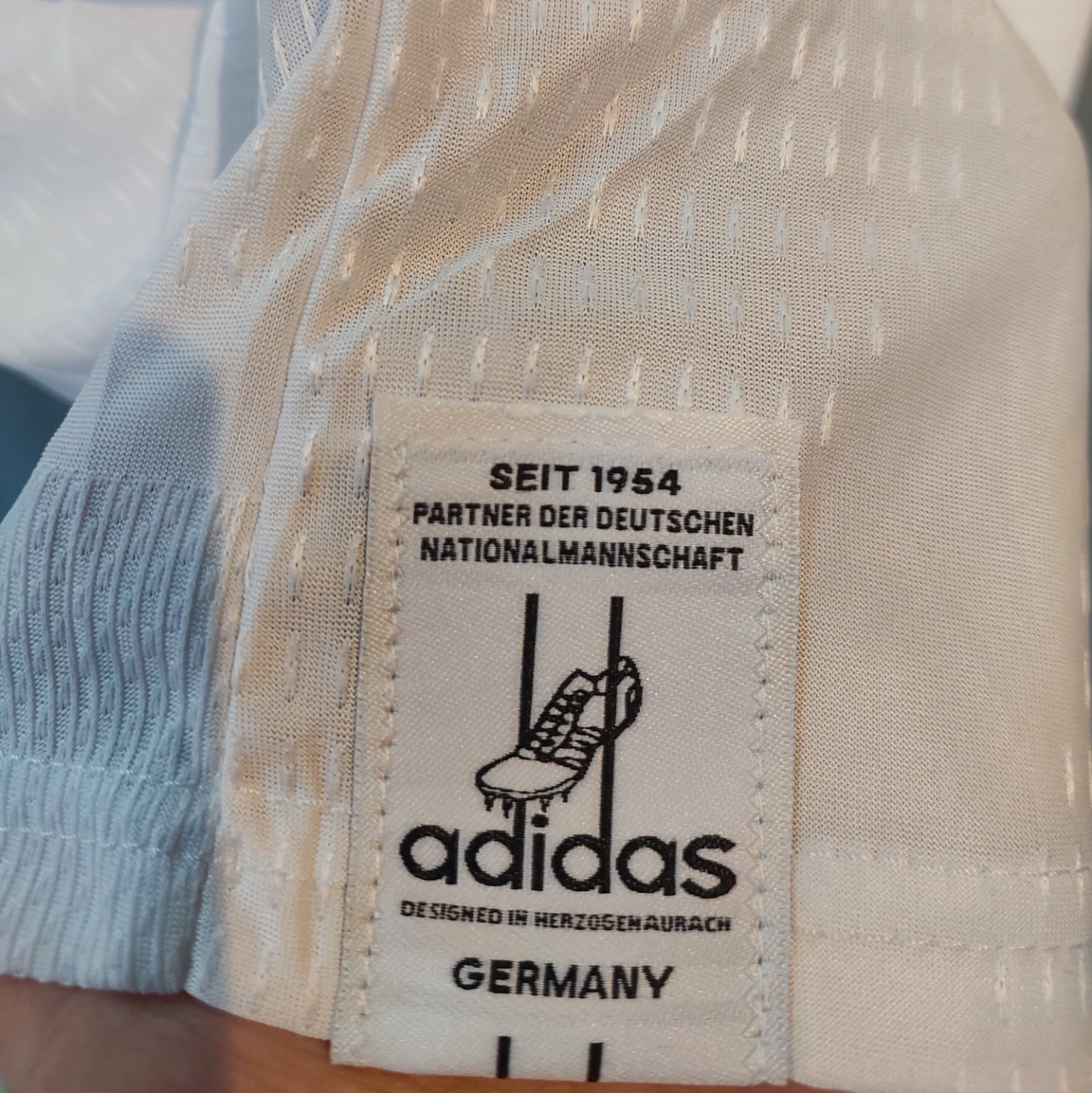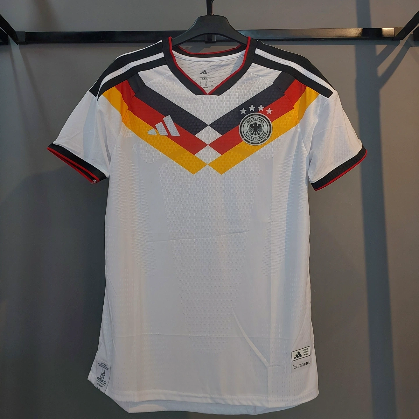 When it comes to football, heritage and innovation go hand in hand. Our Germany 26 Home Replica Jersey combines classic jersey elements with the latest technology and details, creating the icon of tomorrow. Crafted with a doubleknit construction, this jersey offers a slim fit that hugs the body. The adidas logo and club crest are embroidered, adding a touch of authenticity and pride to your game. Cool. Dry. Ready. Climacool wicks and disperses sweat for a cool, dry and distraction free performance. The EQT collar adds a stylish touch, while the quick-drying material keeps you feeling dry and comfortable throughout the game. With this jersey, you're ready to make your mark on the pitch.